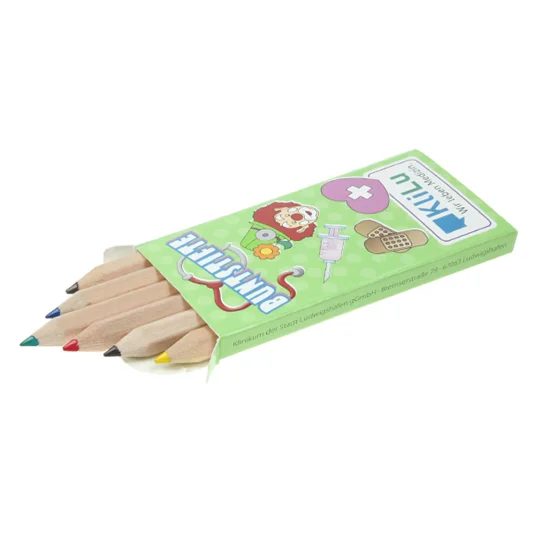 Buntstifte naturbelassen, aus zertifiziertem, europäischem Holz aus nachhaltiger Forstwirtschaft, geliefert in vollflächig bedruckbarem Kartonetui