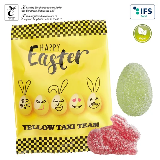 Vegane, bezuckerte Gelee-Leckereien (ohne Gelatine) in je einer Osterhasen- und einer Eierform (je ca.
