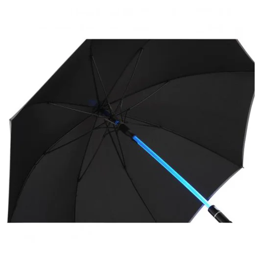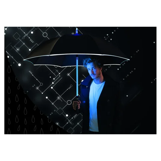 Effektvoller Automatik-Stockschirm (AC) mit angenehmem Soft-Touch-Griff und transparentem Stock mit LED-Beleuchtung und Taste zur Auswahl zwischen 7 Leuchtfarben und Farbwechsel (2 Geschwindigkeiten), mit Windproof-System, inkl.