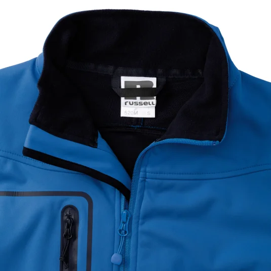 3-Lagen Sportshell Jacke mit vorgeformten Ellbogen, verschweisste lasergeschnittene Taschen, verschweisste hydrophobe Membran. Materialoberfläche mit Abperleffekt, maximale Temperatur- und Feuchtigkeitsregulierung, winddicht. Wasserdicht (5.000mm Wassersäule), atmungsaktiv (5.000g/m² in 24h).