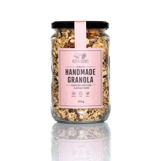Gesund, lecker, vegan – kulinarische Leckereien für Ernährungsbewusste im Glas! Swiss made, auserlesene BIO-Zutaten und Nüsse in 6 verschiedenen Kombinationen und Geschmacksrichtungen (The Original, The Basic, The Kokos, The Chocolate, Cacao Nibs, The Raspberry), zum Geniessen als Topping oder einfach zwischendurch für den kleinen Hunger, im umweltfreundlichen Glas luftdicht verpackt, Haltbarkeit ca. 3 Monate, Inhalt 300 g