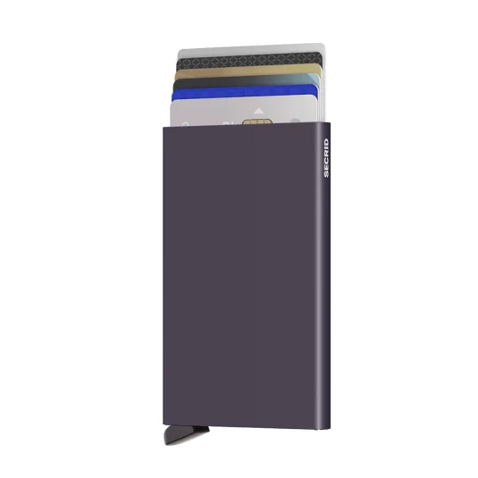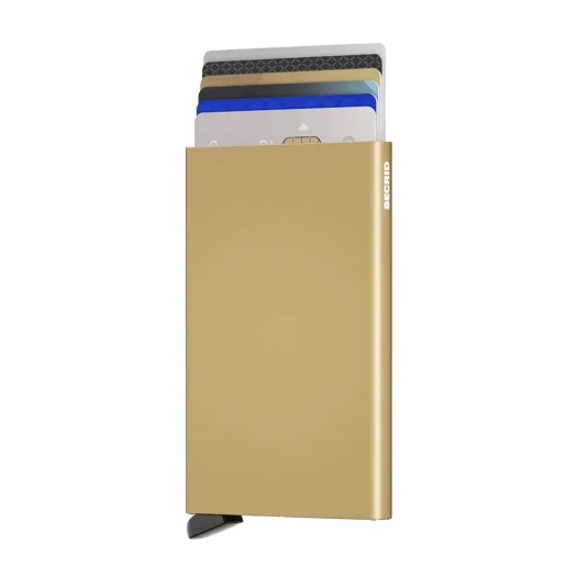 Eleganter Kartenhalter aus Aluminium, zum sicheren Aufbewahren von 4 Kreditkarten mit - oder 6 Kreditkarten ohne Prägung, schützt vor unbefugtem Auslesen von Daten auf RFID-Karten, hergestellt in Holland