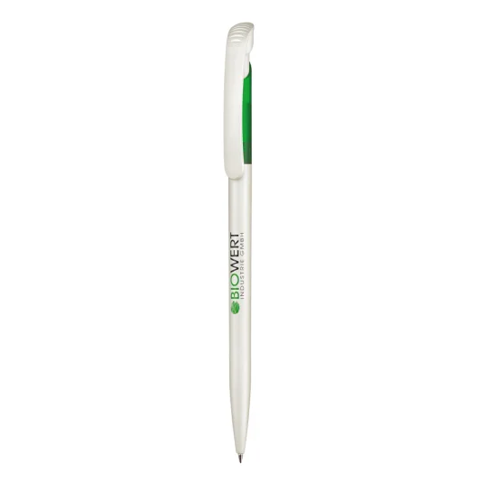 Kugelschreiber, in Deutschland umweltfreundlich hergestellt aus nachwachsendem, biobasiertem Werkstoff Celluloseacetat, mit Schaft aus Kunststoff, Swiss-Made-Qualitätsmine und einer Schreiblänge von ca.