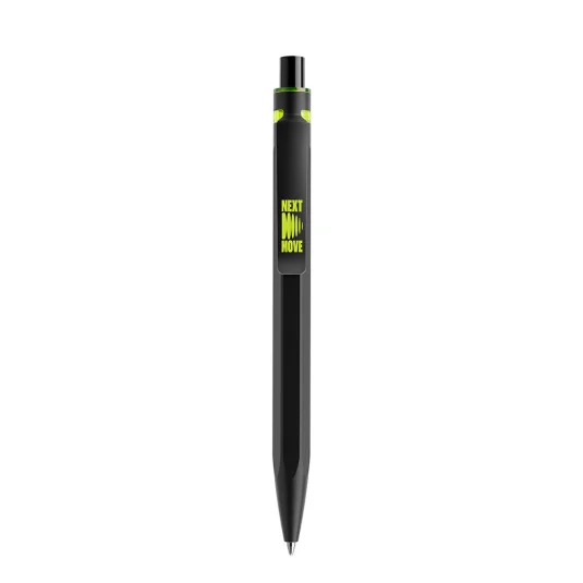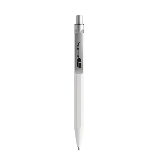Mineralien statt Plastik! Swiss made, hochwertiger Kugelschreiber, hergestellt aus einem mit Mineralien angereicherten Spezialmaterial, was den rezyklierten Kunststoffanteil (farbig zu 50 %, schwarz oder weiss zu 100 %) um nachhaltige 60% reduziert, mit optimaler Griffzone, Metall-Clip und Kunststoff-Grossraummine (schwarz oder blau)