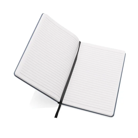 Umweltfreundliches Notizbuch mit 160 Seiten aus rezykliertem liniertem Steinpapier (120g/m²) sowie Einband aus rezykliertem Kraftpapier, mit elastischem Band und praktischem Lesebändchen