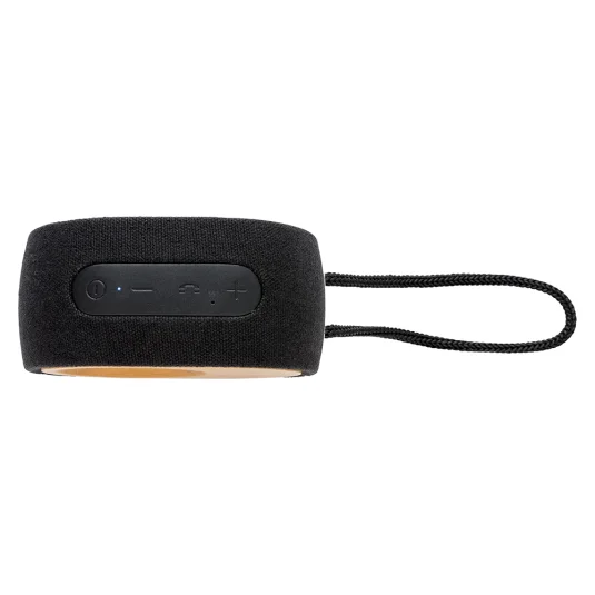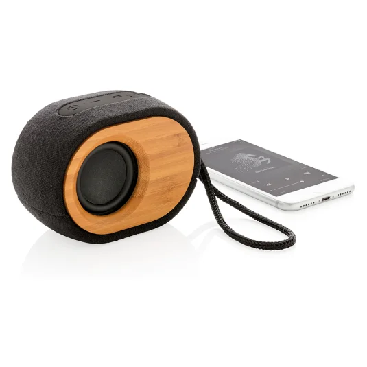 Stylischer, hochwertiger Lautsprecher aus nachhaltigem Bambus, mit Bezug aus Stoff (biologische Baumwolle 30%, Hanffasern 40%, recycletem PET 30%) - mit exzellenter Klangqualität (5W) für einen Musikgenuss von bis zu 8 Stunden und einer Reichweite von bis zu 10 Meter