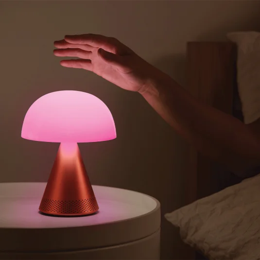 Edle, induktive 2in1 LED-Lampe aus Aluminium, mit 9 verschiedenen, dimmbaren LED-Farbeinstellungen sowie einem eingebauten 360° Bluetooth® Speaker,  mit einer Betriebszeit von 24 Stunden und einer Ladezeit von 3 Stunden, spritzfest (IPX4), wird inklusive USB-C-Kabel geliefert