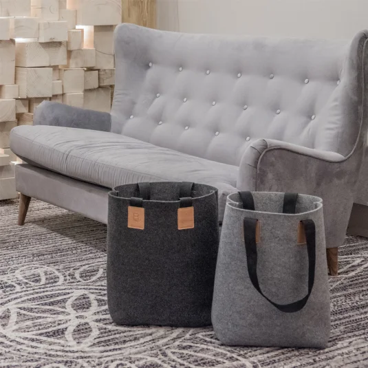 Moderne Tasche aus Wollfilz, mit einem grossen Hauptfach und langen Schulterhenkeln Auch erhältlich aus rezykliertem Filz (Artikelnr.