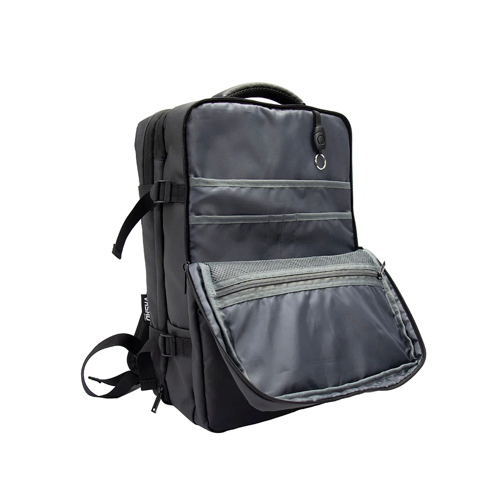 Der perfekt Flugbegleiter - passt unter jeden Flugzeugsitz! Rucksack aus weichem, wasserabweisendem PU-Leder und strapazierfähigem Innenfutter aus rezyklierten Plastikflaschen, mit gepolstertem Laptopfach (17"), praktischem Rundum-Reissverschluss-Hauptfach, einem Netz-Innenfach, weiteren geräumigen Fächern, gepolsterten Schultergurten sowie einer praktischen Trolley-Schlaufe, Inhalt 24 l