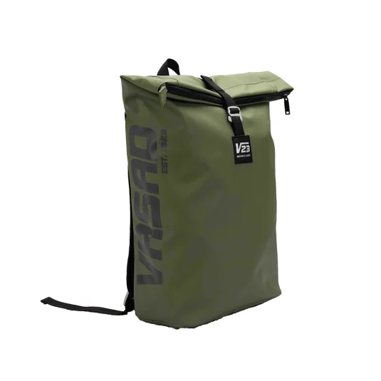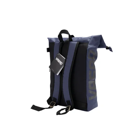 Nachhaltiger Lifestyle-Rucksack aus robuster, wasserdichter LKW-Plane (Tarpaulin), mit Futterstoff aus rPET, gepolstertem Fach für Laptop oder Tablet, praktischem Rollverschluss mit Reissverschluss sowie reflektierendem Aufdruck für eine bessere Sichtbarkeit