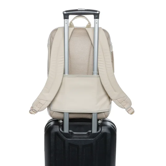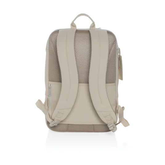 Vielseitiger, eleganter Rucksack aus rezykliertem Polyester, mit gepolstertem Fach für bis zu 15,6"-Laptops, praktischer Deckeltasche, Netztaschen im Inneren, einer Schlaufe für die Befestigung am Trolley sowie praktischem Gepäckanhänger, Inhalt 20 l