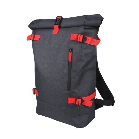 Umweltfreundlicher Anti-Diebstahl-Rucksack in melierter Farbe, hergestellt aus rezykliertem PET-Material (600D rPET), mit praktischem Wickelverschluss, verstecktem Fach am Rücken, seitlichem Flaschenfach, grossem Reissverschluss-Hauptfach mit gepolsterten Fächern für Laptop und Tablet sowie komfortablen und verstellbaren Schultergurten, Mindestbestellmenge 300 Stück