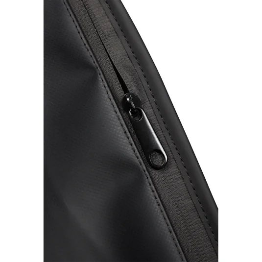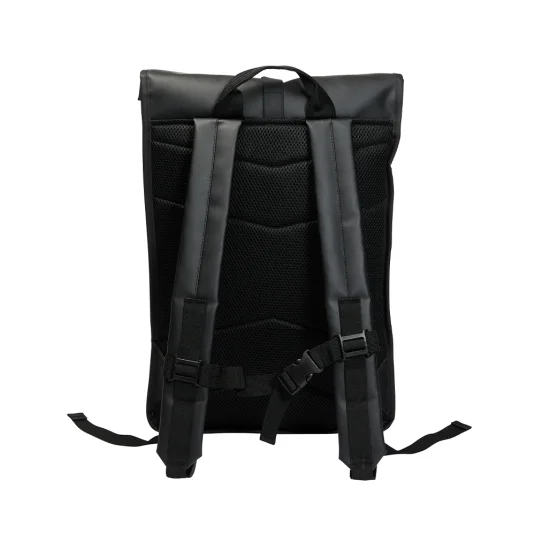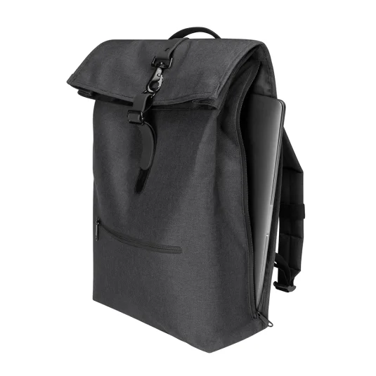 Trendiger, robuster Rucksack aus rezykliertem PET und PU, mit seitlichem Reissverschluss zum einfachen Verstauen von Laptop und Tablet im gepolsterten Innenfach, mit grossem Hauptfach und einem praktischen Reissverschluss-Aussenfach