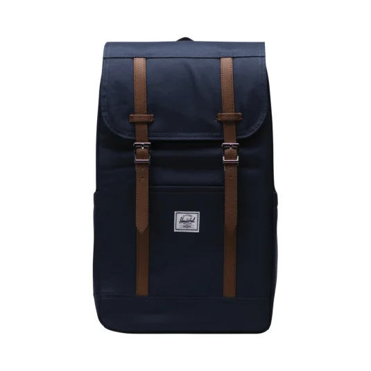 Herschel Retreat™ Rucksack aus 100 % rPET mit zahlreichen Fächern, darunter ein gut gepolstertes und mit Fleece gefüttertes flexibles Fach zum Schutz von Laptops, U-Pull-Kordelzugverschluss, Reissverschluss auf der Rückseite und zwei Trinkflaschenfächer, die sich an verschiedeneGrössen anpassen lassen