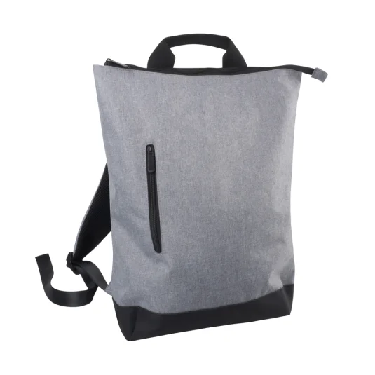Trendiger City-Rucksack hergestellt aus rezyklierten PET-Flaschen, mit grossem Hauptfach, seitlichem Aussenfach, wasserfesten Reissverschlüssen und verstellbaren Henkeln, Mindestbestellmenge 250 Stück