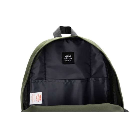 Das beliebte Rucksackmodell gibt es jetzt als nachhaltige Version, Stoff, Futter, Reissverschlussband und gewebtes Band sind aus rezykliertem Kunststoff hergestellt