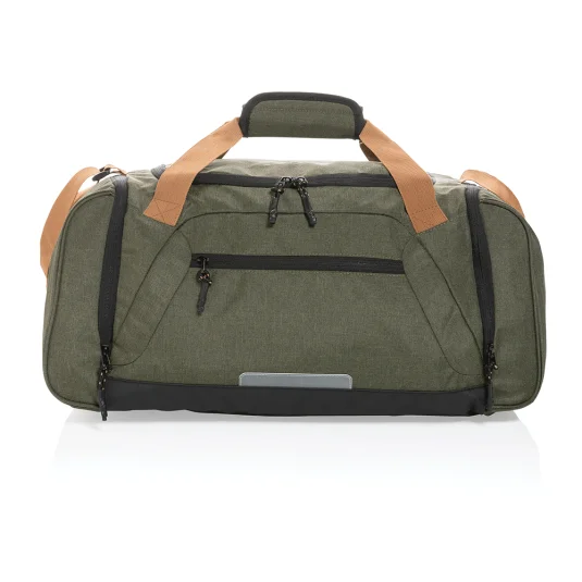 Urbane Tasche hergestellt aus 24 PETFlaschen! Aussenseite aus 50 % rezykliertem Two-Tone Polyester und Innenfutter aus 100 % rezykliertem Polyester, mit grossem Hauptfach, zusätzlichem Frontfach mit Reissverschluss, seitlichen Reissverschlusstaschen und bequemen, verstellbaren Schultergurten