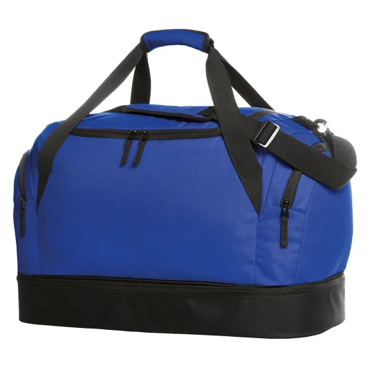 Klassische Sport-und Freizeittasche aus Polyester, mit grossem Hauptfach mit 2-Wege-Reissverschluss, mit stabilem, getrenntem Bodenfach, Reissverschluss-Innenfach, zwei Seitentaschen, starken Tragegriffen sowie abnehmbarem, längenverstellbarem Schultergurt