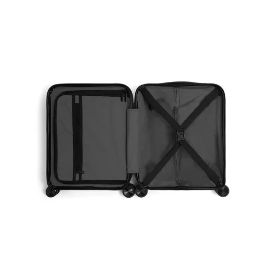 Langlebiger, leichter Trolley aus Kunststoff, mit vier 360°-drehbaren Rollen, einem 3-stufig verstellbaren Aluminium-Schiebebügel mit ergonomischem Griff sowie einem integrierten Zahlenschloss - der äusserst strapazierfähige Vinyl-Sticker kann mit dem eigenen Firmen-Logo oder Bild grossflächig und individuell gestaltet werdenAuch in den Grössen Regular und Large erhältlich (Preise auf Anfrage)