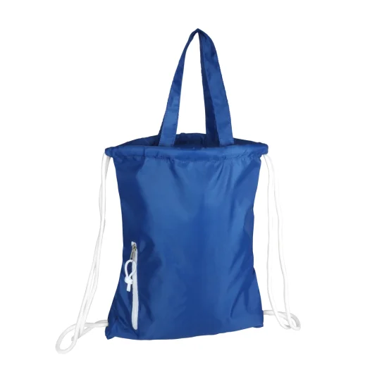 Leichte Tasche/Rucksack aus hochwertigem rPET, mit Traghenkeln und Aussentasche, in der Länge anpassbare Kordelzüge dienen gleichzeitig als Umhängegurte, Mindestbestellmenge 300 Stück