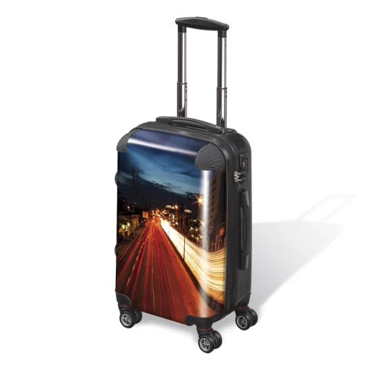 Trendy trolley with 4 wheels, retractable handle, TSA lock, 2 mesh compartments with zip, adjustable packing straps, front cover can be personalized (entire surface) from 20 pc already, also available in large version