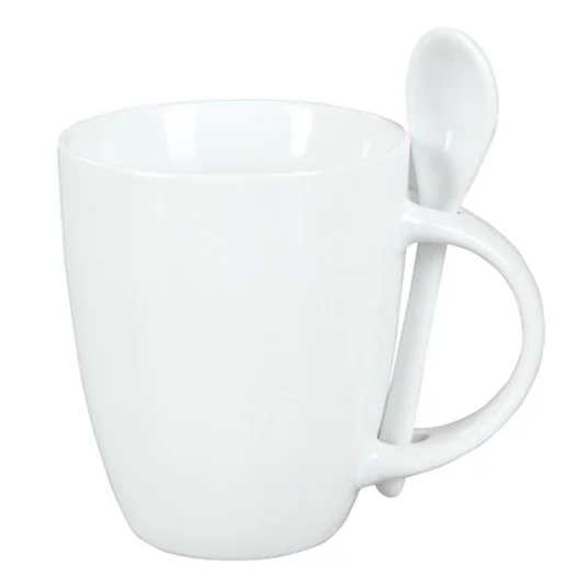 Amusing ceramic mug with spoon, mug and spoon can be in a combination of colors, contents 3 dl, minimum order 108 pc