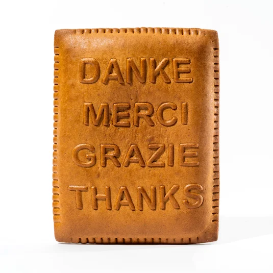 Swiss Made and lovingly handcrafted honey beaver with first-class raw materials from the region, without artificial flavour enhancers or preservatives, available in various standard designs (Happy Birthday, Herzlichen Dank, bliibxund, hearts, Father Christmas, Christmas tree, stars, Easter bunny with basket, various coats of arms), content 135 g, delivered in simple foil packaging and a white cardboard box, shelf life approx.