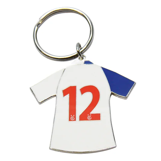Keyring in personal 2D design, of metal, with enamel color filling, choice of shape and design, minimum order 500 pc