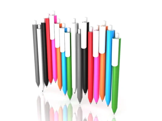 Swiss made, elegant retractable ballpoint pen of ABS plastic with clip, from 10,000 pc can be any Pantone color, minimum order 3000 pc