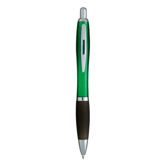 Elegant pen, sits well in the hand thanks to its ergonomic shape and rubberized grip zone, push button, tip and clip of metal, with plastic large capacity cartridge (black)