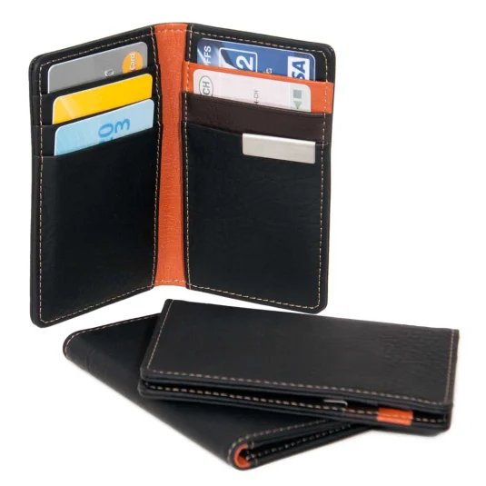 Elegant well-made case for credit and business cards, of artificial leather, minimum order 250 pcs