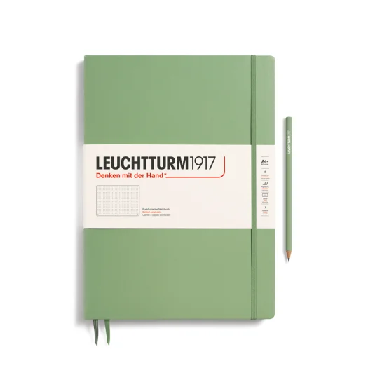 Master Slim notebook in over-sized format DIN A4+, with high quality paper (100g/m2), three-page tabulated blank table of contents, 121 numbered pages (lined, checked, dotted or blank), 8 removable pages, pleated pocket and rubber closure, if desired available with reinforced pencil loop (price on request)