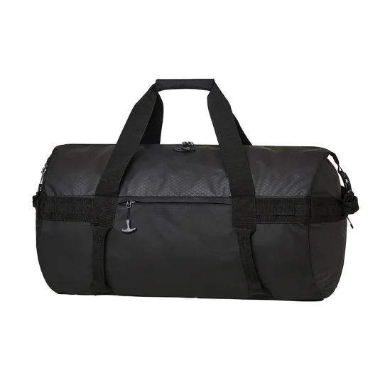 Sports travel bag made from recycled PET with backpack function; with a spacious main compartment, side zips, additional outer compartments and concealed, padded and length-adjustable shoulder straps