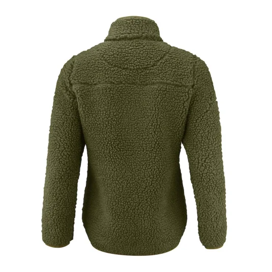 Soft and warming women's sherpa fleece jacket as an element of the layering concept. Two-coloured women's sherpa fleece jacket. Contrasting material on the chest and piping along the edges of the seams. Chest pocket and side pockets with zip. This item is supplied in a compostable polybag.