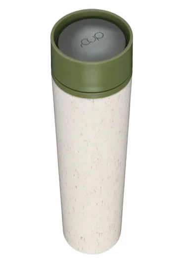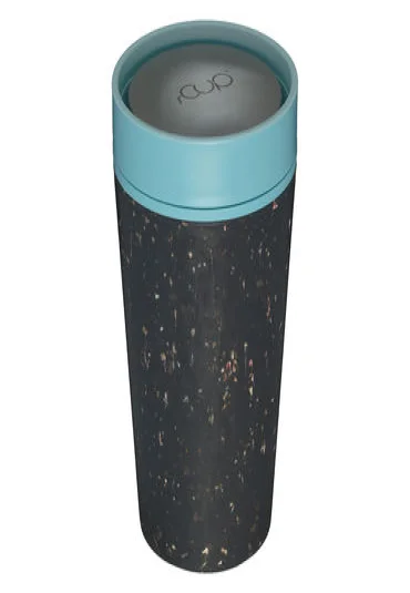 Sustainable, double-walled coffee cup-to-go, made from recycled disposable coffee cups, with leak-proof 360-degree screw cap (one-hand-click cap), dishwasher-safe, capacity 3.