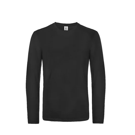 Long-sleeved shirt, tubular with side seams and narrow rib-knit collar, quality: 100% cotton, 185 g/m²