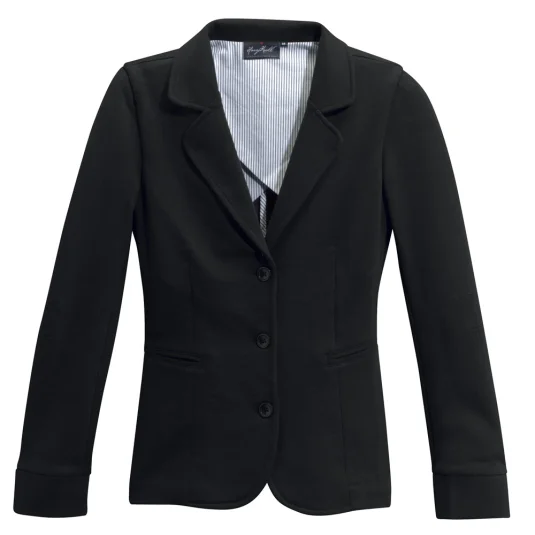 Hakro fashionable cut women's sweatshirt blazer with blue and white striped jersey part-lining in the back.
