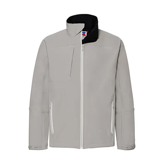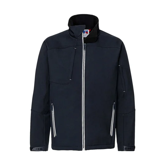 Bionic-Finish® Eco (3-layer softshell with hydrophobic membrane), fluorine and PFC free, wind and waterproof (5000 mm), breathable (5000 g/m² in 24h), stand-up collar, Hydroshell Air inserts in the underarm area, zipped chest, arm and side pockets, inner media mesh pocket, adjustable cuffs.