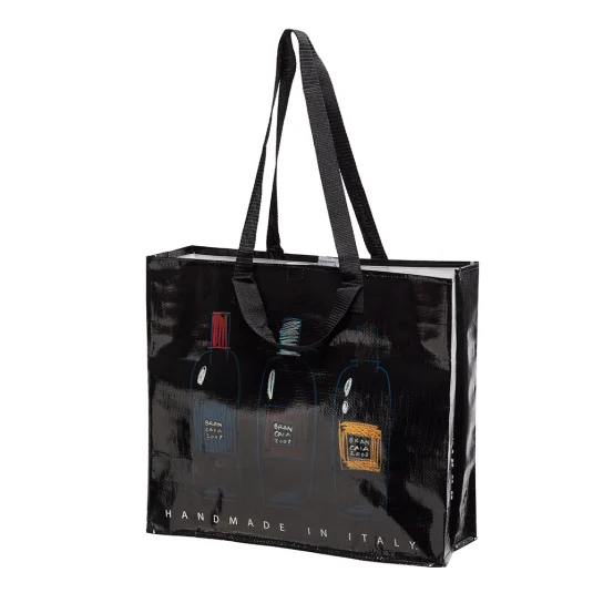Environmentally-friendly, because it can always be reused! Attractive shopping bag in multicolor personal design, of polypropylene, with sturdy carrying straps, minimum order 1000 pc, other sizes possible (price on request)