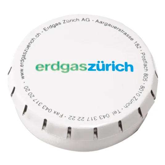 Practical spring lid sweet tin, filled with sugar-free peppermint pastilles (approx.