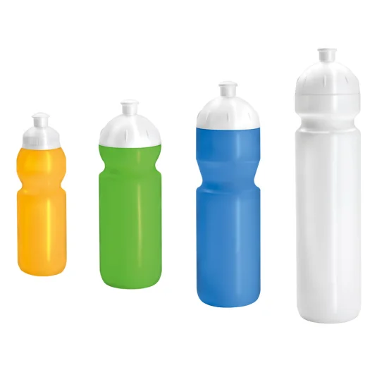 Swiss made, plastic sport drinking bottle, suitable for food and dishwasher safe, with leak-proof lid, delivered with a choice of drinking or snap-shut lid, also available with contents of 330 ml, 500 ml or 1 liter