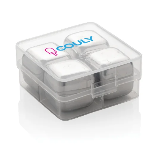 Enjoy your chilled drink with this set of 4 stainless steel ice cubes.