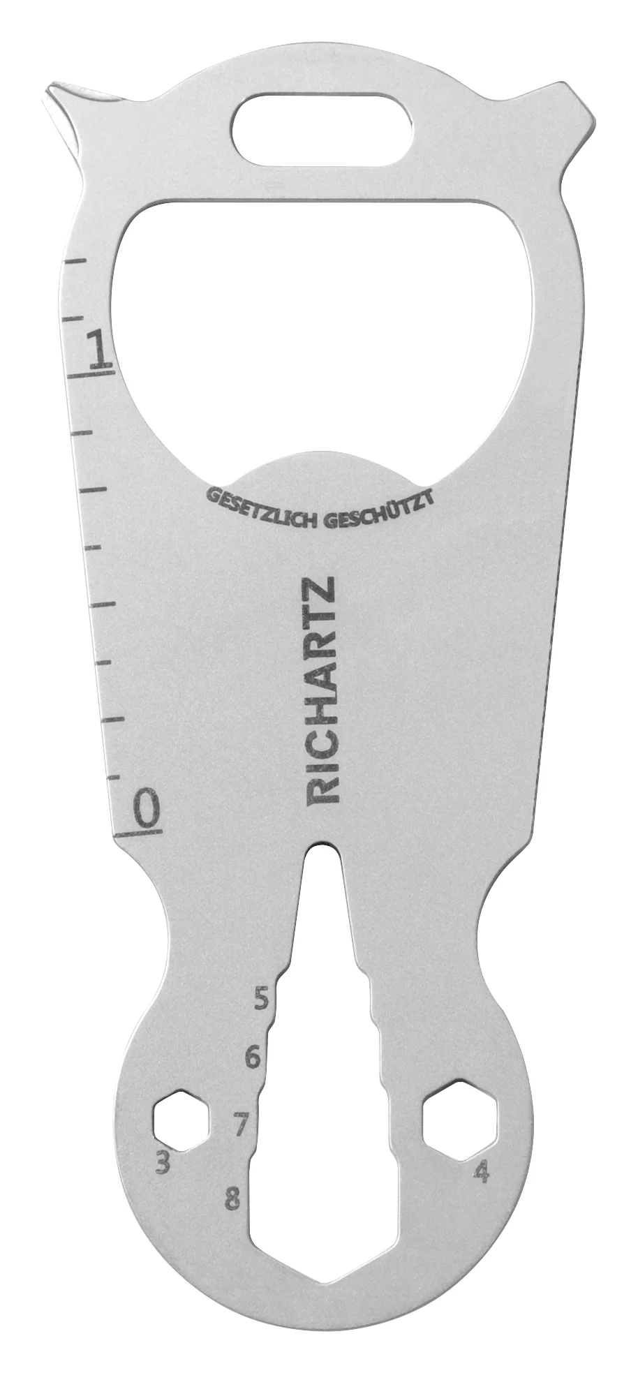 Set consisting of a small, precise multifunctional tool made of stainless steel with 14 functions; pliers with wire cutter, two blades (one serrated), two flat-blade screwdrivers, a flat-blade screwdriver/cap lifter combination, Phillips screwdriver, can opener, file, belt pouch and two hexagon spanners integrated in the handle, as well as another indispensable tool made of stainless steel for the key ring, with 16 functions; bottle opener, small and large slotted screwdriver, Phillips screwdriver, cable puller, two bicycle spoke spanners, seven hexagon spanners, centimetre ruler and nail puller, supplied in a beautiful gift box Grip Tool Pocket size: 6.