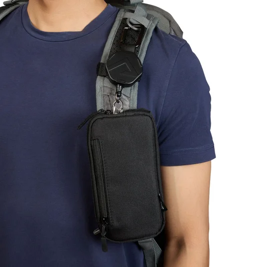 Connect your smartphone - quick and secure access during every outdoor adventure! Set consisting of a winter bag and a lock. Smartphone holder made of tear-resistant material with a lock system, a carabiner and strap for attaching to any rucksack. Any smartphone with a cover can be attached to the bag. The wire rope with a length of 80 cm can hold a weight of approx. 2 kg.