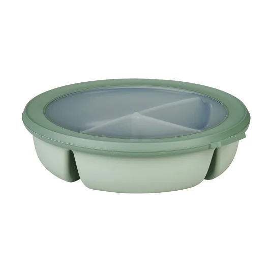 Made in Netherlands – leak-proof multi-purpose bowl made of exceptionally durable plastic with three separate compartments, ideal for keeping different meal components separate, storing them airtight in the fridge or freezer, transporting them safely, and reheating meals in the microwave without the lid; capacity: 250 ml + 250 ml + 500 ml.