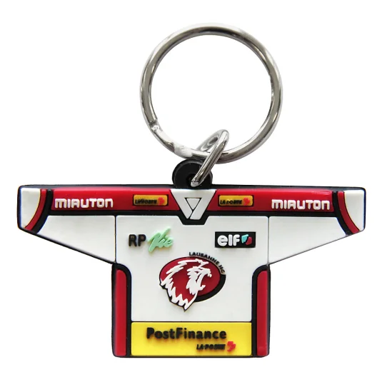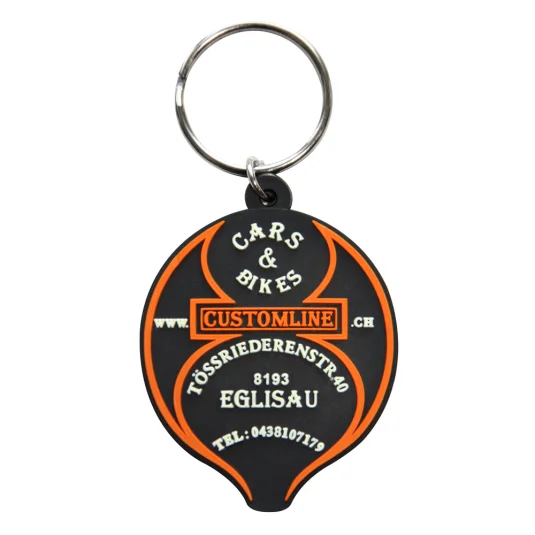 Porte-clés en gomme, avec anneau métallique, disponible en 2D ou 3D, forme et design au choix, volume de commande minimum 500 pièces
