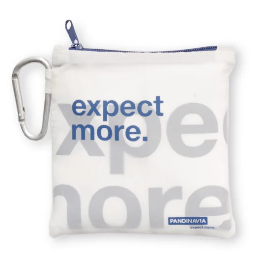 Petit shopping bag tendance et pratique en polyester, avec pochette de rangement et mousqueton.