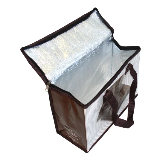 Sac isotherme au design personnalisable multicolore, en polypropylène, face intérieure avec revêtement isotherme, avec fermeture éclair et anses solides, quantité minimale de commande 1000 articles