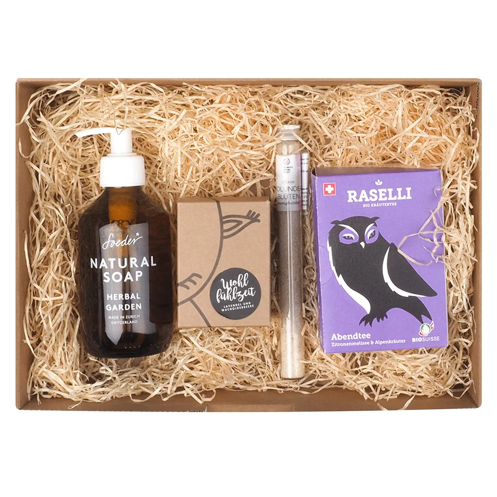 Boîte décorative remplie de différents produits de qualité :