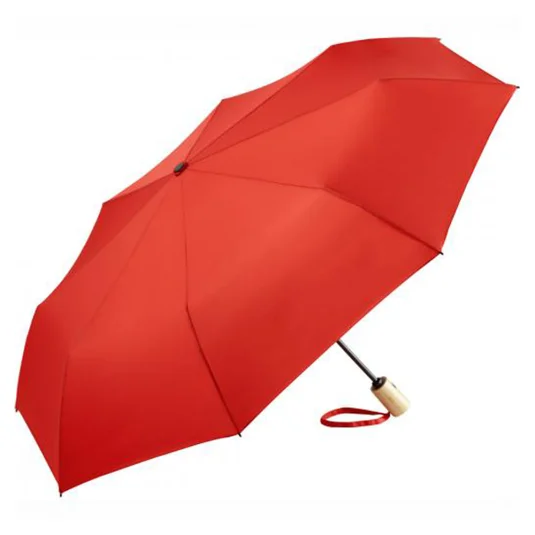 Parapluie de poche durable (AOC), avec ouverture et fermeture rapides (automatiques). Fabriqué en plastique recyclé, muni d’une poignée en bambou et d’une grande flexibilité par vent fort.